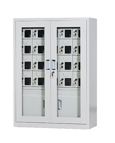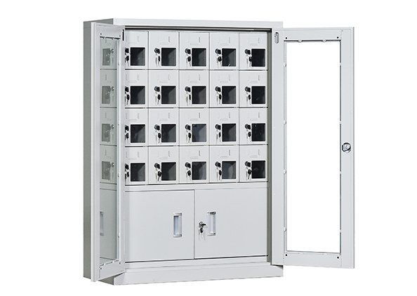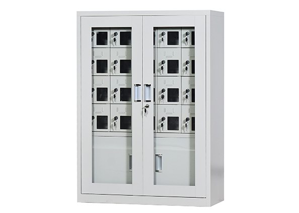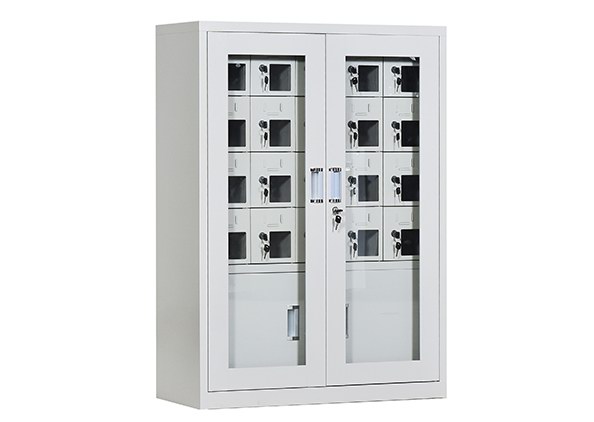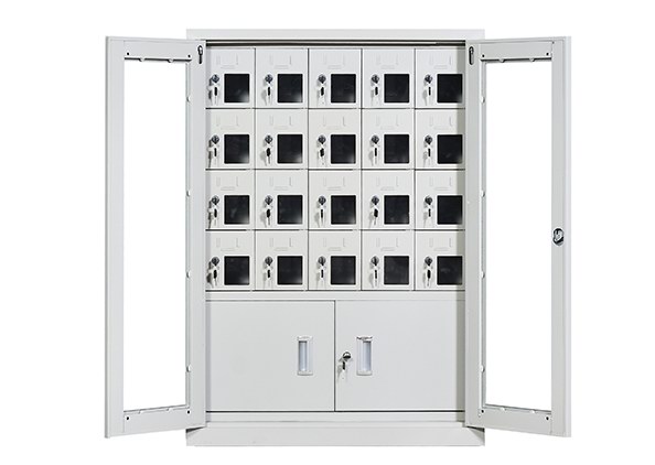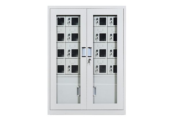 手機保密柜正面為對開金屬邊框玻璃大門,便于觀察柜內(nèi)情況,堅固透亮,美觀大方。